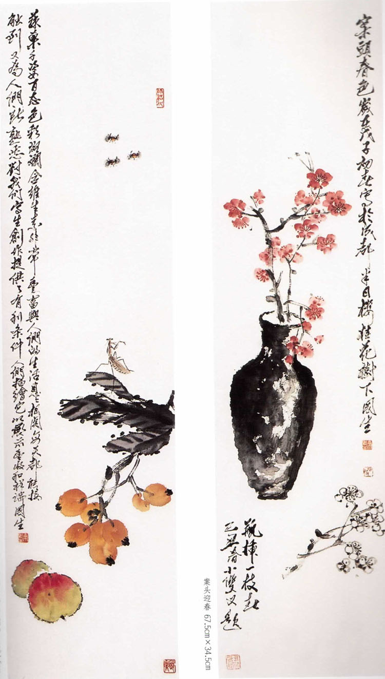 案头春申色二条幅
