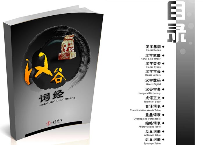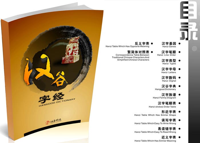 The text book is called bible which must have things enduring through ages and cohere excellent essence of Hanzi. As encyclopedia of commonly used Hanzi, it falls into four parts: First part is the latest achievements of Hanzi engineering. Second part is HanGood dictionary, including 3755 first grade national standard Hanzi with Chinese-English. Every page of the dictionary comes with learning words with pictures, and quick search by Hanzi digit. Third part is Hanzi family tree. Forth part is commonly used Hanzi diagram.